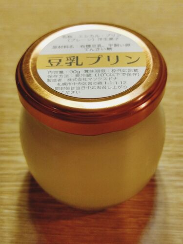 2つめのエシカルプリンは豆乳味なの~。これはカロリーの表記はなかったの~。 原材料は有機豆乳、平飼い卵、てんさい糖なの~。プレーンで牛乳が使われていたところを豆乳にしてあるの~。 プレーンのプリンに比べてつるんとした仕上がりで、すごい豆乳の味…