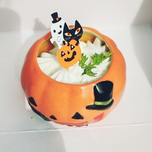 フランス菓子アベニューのプリン、2つめはかぼちゃプリンなのー。これは期間限定って書いてあったのー。 生クリームの下にあるかぼちゃプリンは、ものすごく硬くて力を入れないとスプーンですくえないくらいなのー。 味はそのままのゆでたかぼちゃをちょっと…