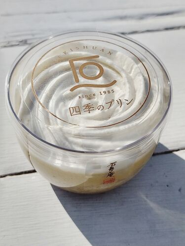 伊東にある和菓子のお店で、プリンのポスターが出ているのを見つけたから寄ってみたの~。1個184kcalなの~。 原材料は牛乳、クリーム、殺菌冷結卵、粗糖、脱脂濃縮乳、カラメル、香料だったの~。 表面に比べて内側は少しだけ白色が強くて、全体がとろとろ…