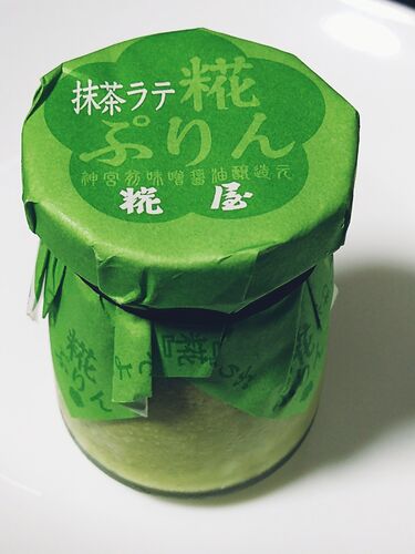 5つめは抹茶ラテ糀ぷりんなの~。1個154kcalなの~。 これは原材料のいちばん最初が乳等を主要原料とする食品で、牛乳より先に来ていたの~。 以下牛乳、卵、砂糖、緑茶、米こうじ、醸造調味料だったの~。 表面はほうじ茶みたいな色をしていたの~。 少しだ…